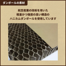 だんぼっちの材料は、軽量で強度のあるハニカムダンボールを使用しています。さらにアメリカの軍用飛行機の構造に採用されたハニカム構造体を取り入れることで、軽さと強さの両立を実現しました。